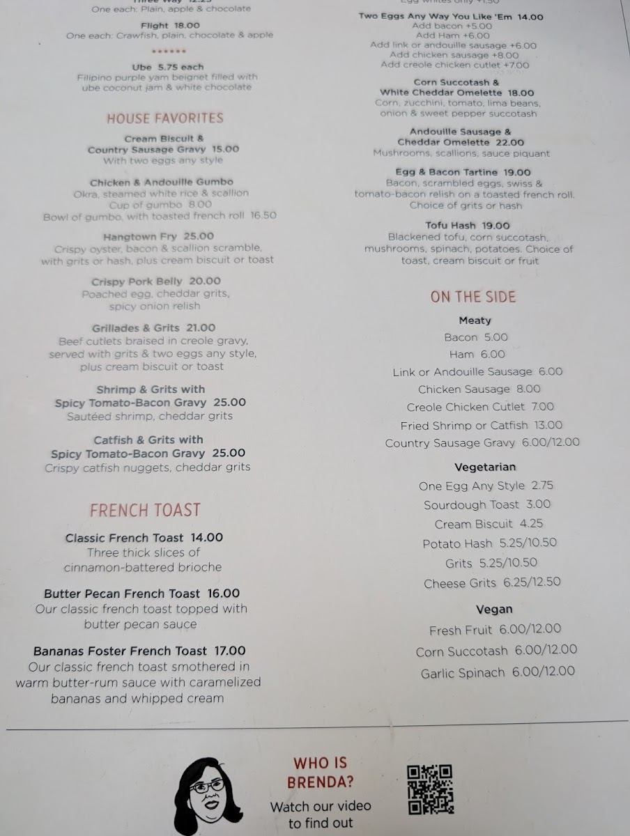 While the prices may feel slightly upscale—such as the $5 oyster—diners consistently agree that the quality of food and the overall experience justify every penny. Many suggest that the generous portions allow for sharing, which adds to the social experience of dining at Brenda's. The calm and inviting atmosphere serves as a perfect backdrop for small groups and couples alike, making it ideal for a leisurely brunch or an intimate dinner.